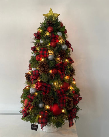 This delightful handcrafted table top Christmas Tree is artfully adorned with natural mixed pine and lovely Christmas ornaments. Standing at an awe-inspiring height of 20 inches, make this season extra-special with this one-of-a-kind decoration!